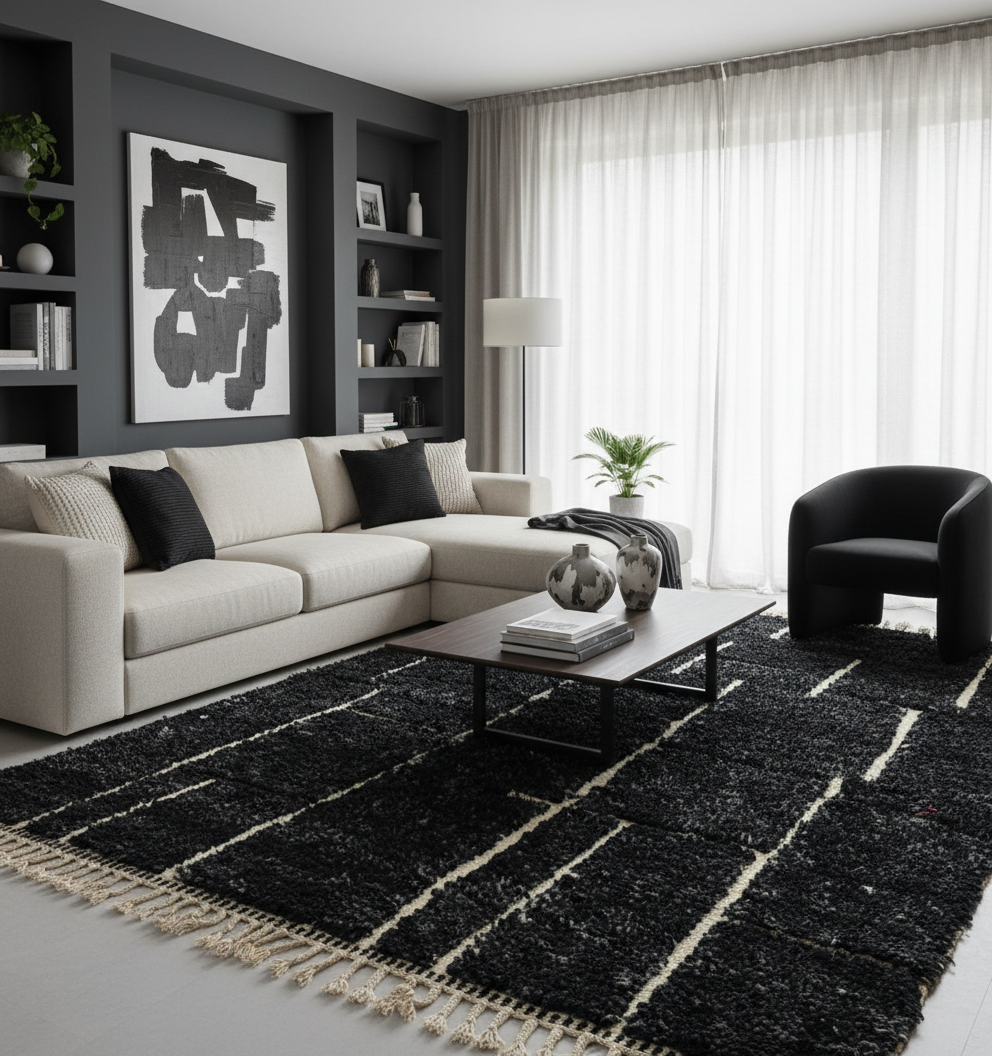 The design showcases rich Amazigh geometric motifs and layered patterns, symbolizing balance, identity, and cultural heritage. Its harmonious color palette blends tradition with a contemporary feel.Each rug is one of a kind, handmade by skilled Moroccan artisans, making it both a functional area rug and a unique decorative art piece.